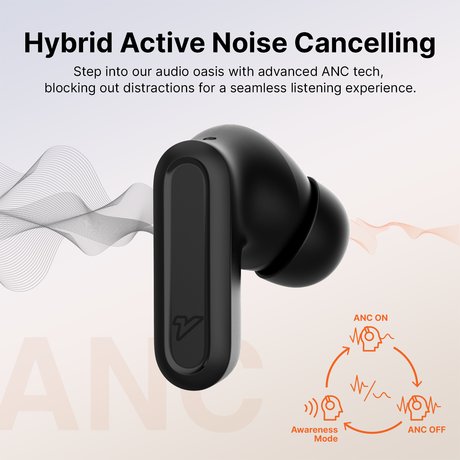 - Hybrid Active Noise Cancelling (ANC): Immerse yourself in an audio oasis, as our cutting-edge ANC technology eliminates external distractions, ensuring an unparalleled and uninterrupted listening experience.