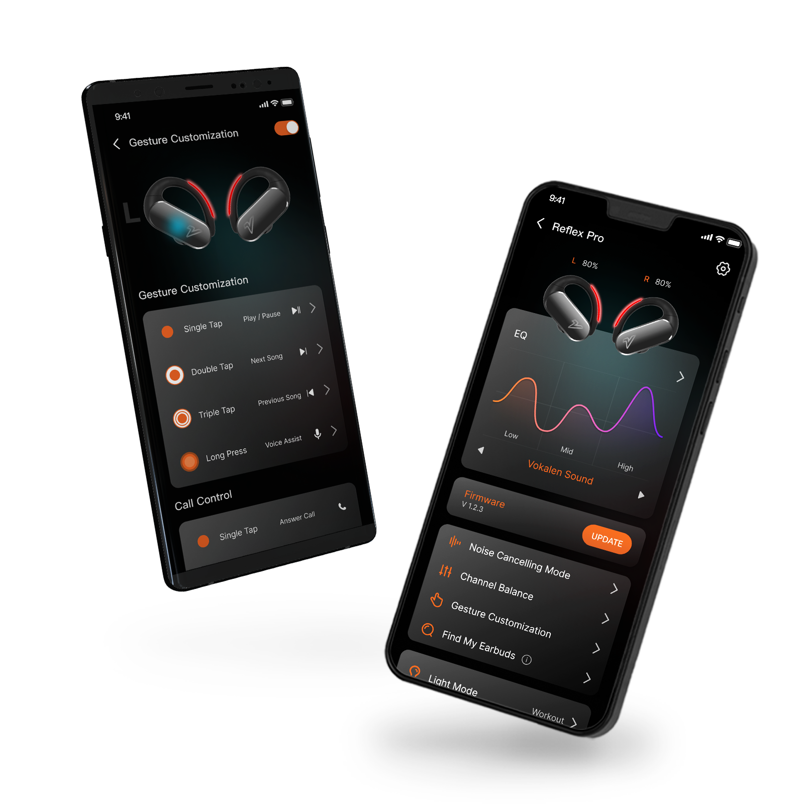 Vokalen Connect App Customization: Personalize your sound experience with the Vokalen Connect App, allowing you to adjust EQ settings and ANC levels for a fully tailored listening experience in your Bluetooth earbuds sport.